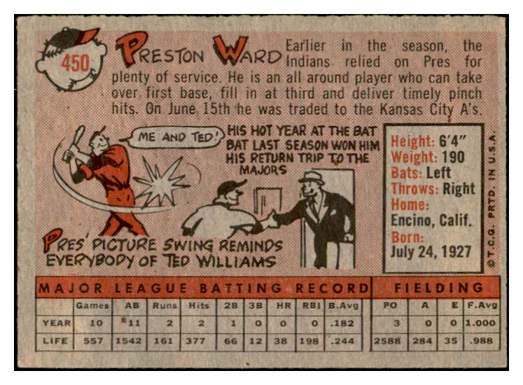 1958 Topps Baseball #450 Preston Ward A's EX-MT 536071