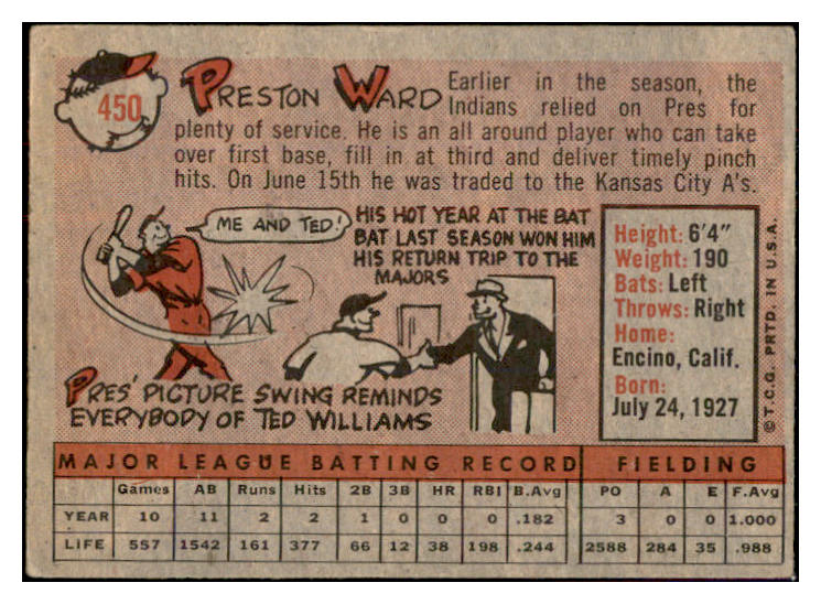 1958 Topps Baseball #450 Preston Ward A's VG-EX 534308
