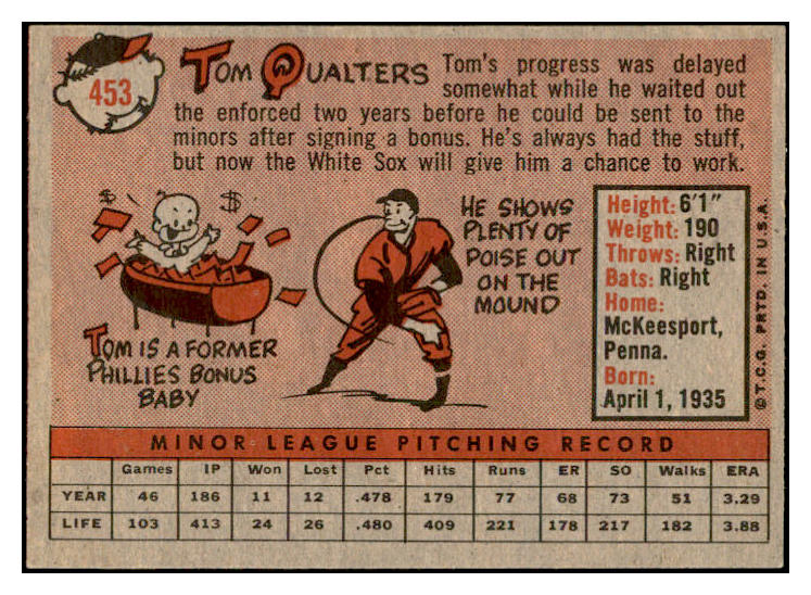 1958 Topps Baseball #453 Tom Qualters White Sox EX-MT 536075