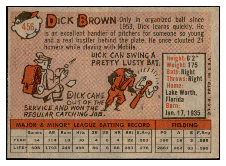 1958 Topps Baseball #456 Dick Brown Indians EX-MT 536079