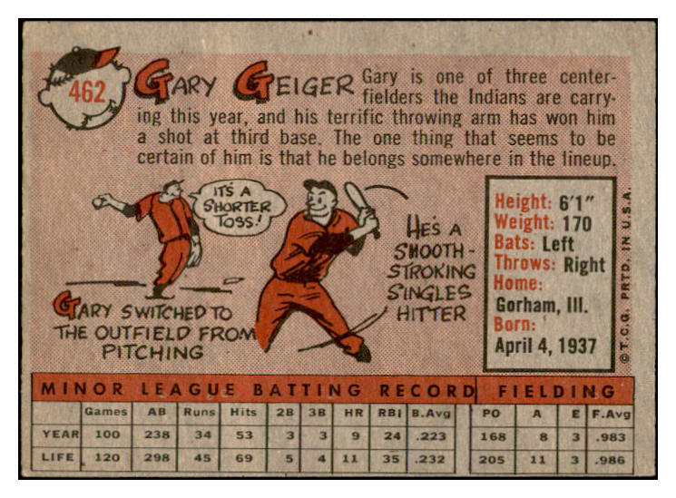 1958 Topps Baseball #462 Gary Geiger Indians EX-MT 536085