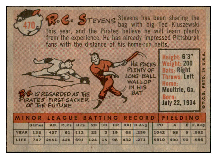 1958 Topps Baseball #470 R.C. Stevens Pirates EX-MT 536093