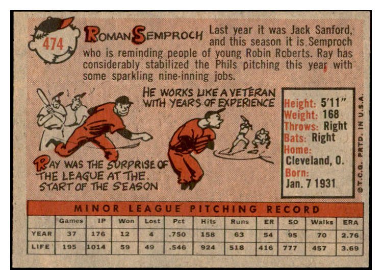 1958 Topps Baseball #474 Roman Semproch Phillies EX-MT 536099