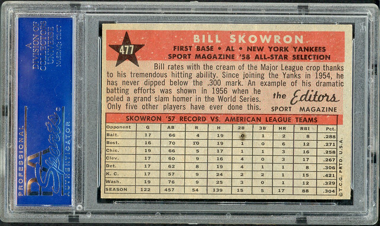 1958 Topps Baseball #477 Bill Skowron A.S. Yankees PSA 7 NM 546545
