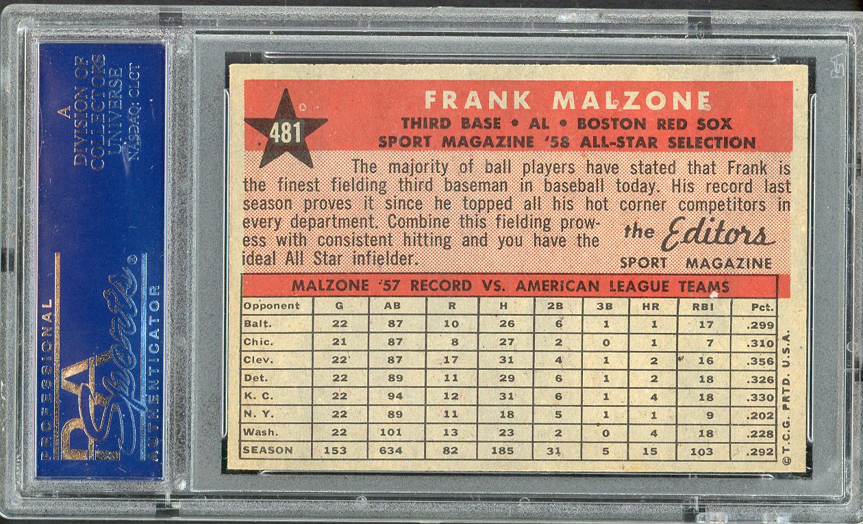 1958 Topps Baseball #481 Frank Malzone A.S. Red Sox PSA 7 NM 546627