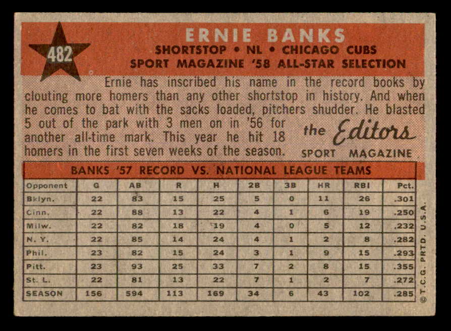 1958 Topps Baseball #482 Ernie Banks A.S. Cubs EX+/EX-MT 539305