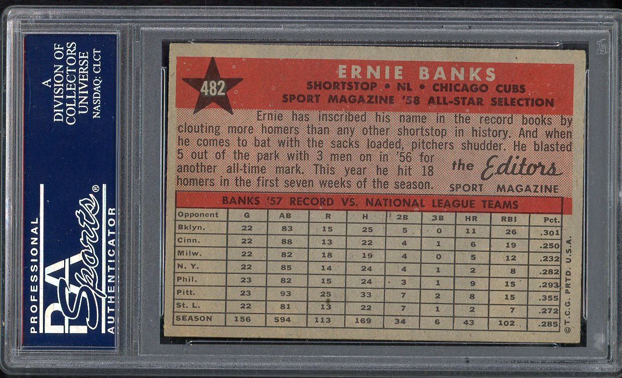 1958 Topps Baseball #482 Ernie Banks A.S. Cubs PSA 7 NM 546579