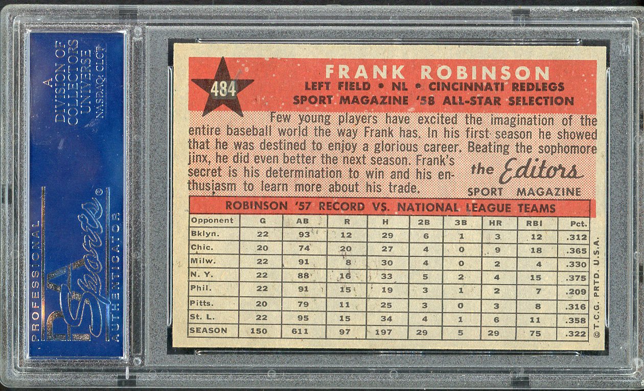1958 Topps Baseball #484 Frank Robinson A.S. Reds PSA 7 NM 546563