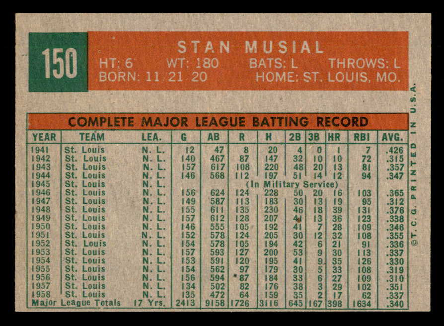 1959 Topps Baseball #150 Stan Musial Cardinals VG-EX 547156