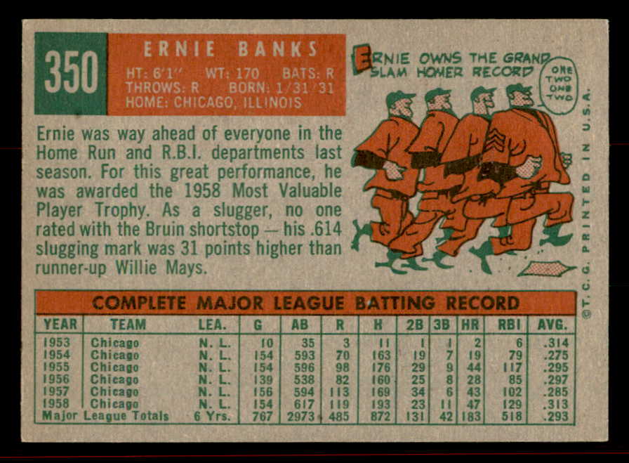 1959 Topps Baseball #350 Ernie Banks Cubs EX+/EX-MT 545617