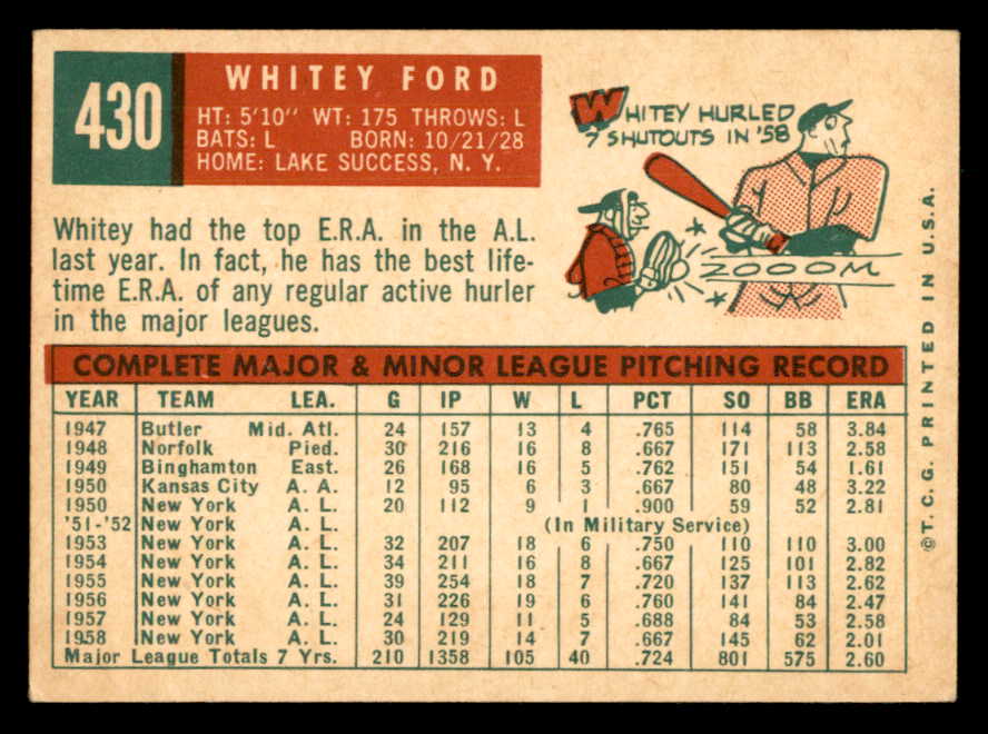 1959 Topps Baseball #430 Whitey Ford Yankees EX-MT 547173