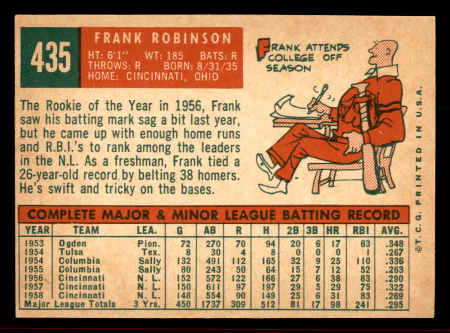 1959 Topps Baseball #435 Frank Robinson Reds NR-MT 545609