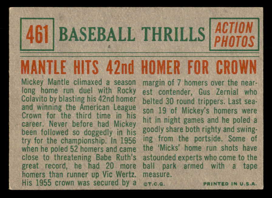 1959 Topps Baseball #471 Mickey Mantle IA Yankees EX+/EX-MT 547160