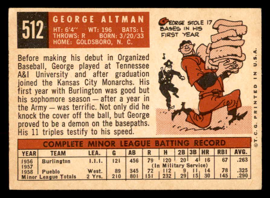 1959 Topps Baseball #512 George Altman Cubs EX 547016