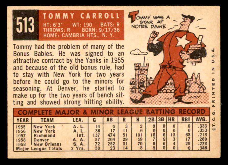 1959 Topps Baseball #513 Tom Carroll A's EX-MT 547161