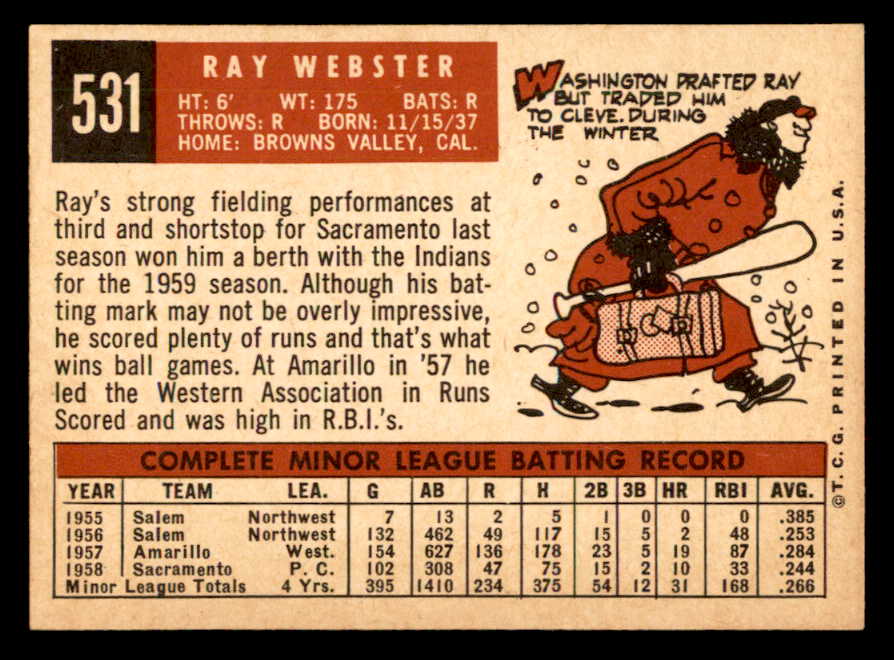 1959 Topps Baseball #531 Ray Webster Indians EX-MT 547030
