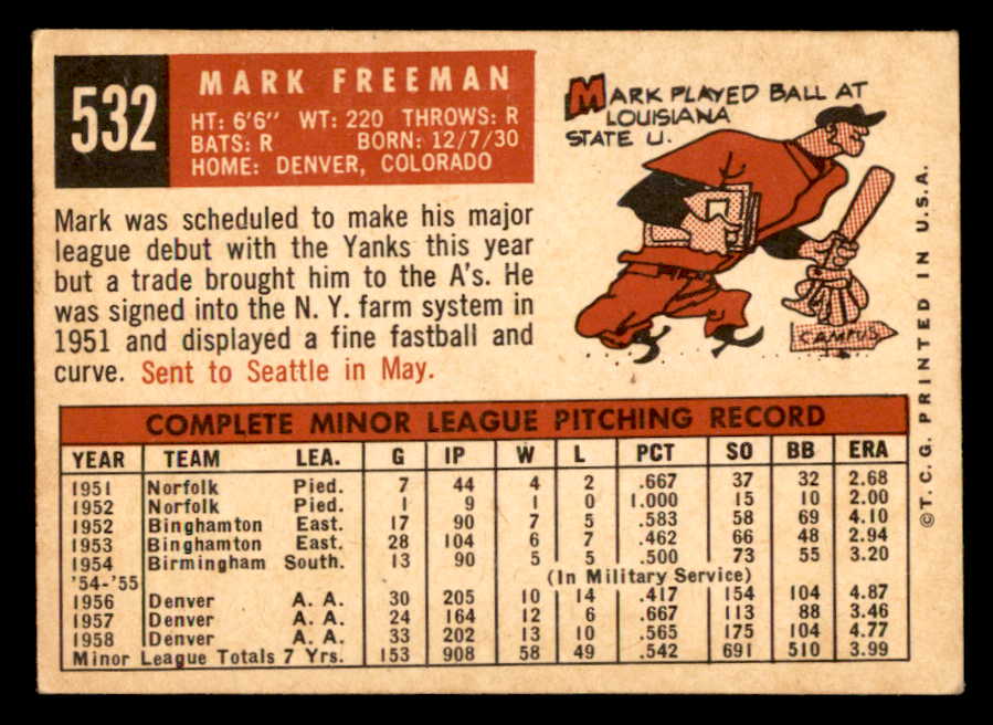 1959 Topps Baseball #532 Mark Freeman A's EX 547036