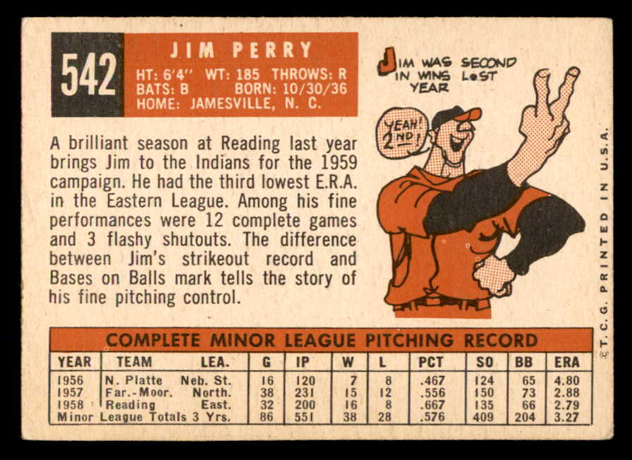 1959 Topps Baseball #542 Jim Perry Indians VG-EX 547043