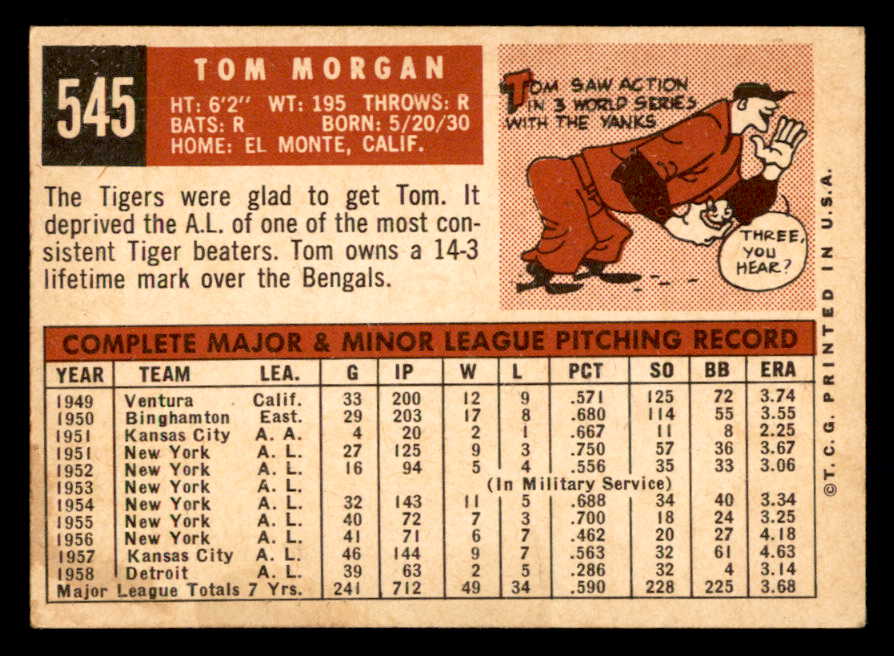 1959 Topps Baseball #545 Tom Morgan Tigers EX-MT 547044