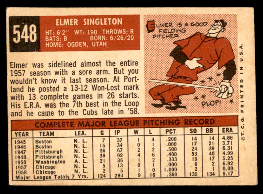 1959 Topps Baseball #548 Elmer Singleton Cubs VG-EX 547047