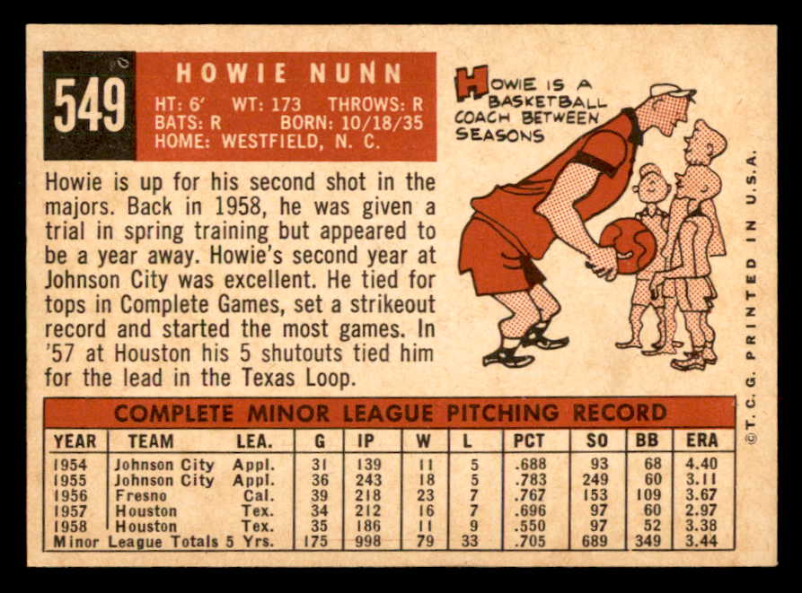 1959 Topps Baseball #549 Howie Nunn Cardinals VG-EX 547048
