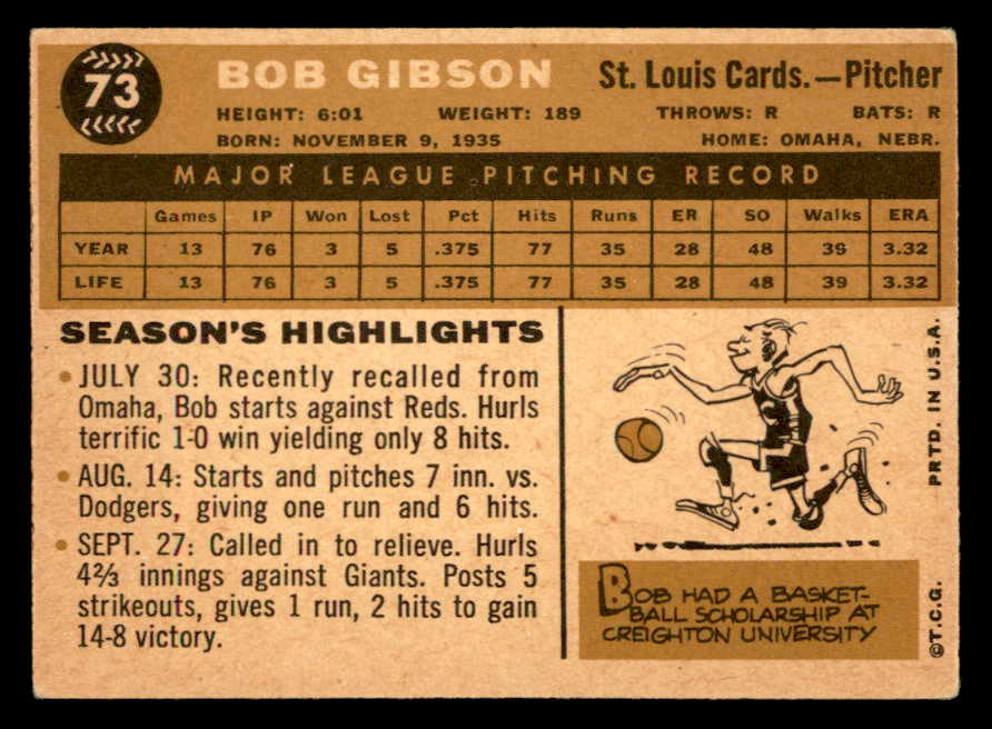 1960 Topps Baseball #073 Bob Gibson Cardinals VG-EX 544573
