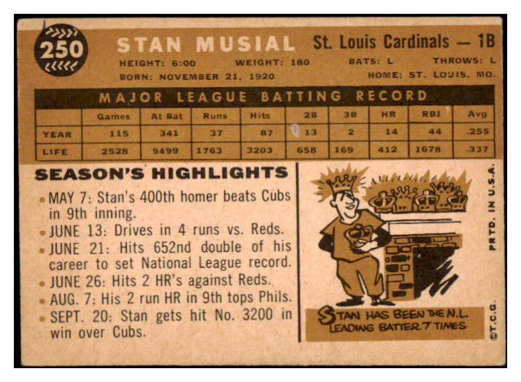 1960 Topps Baseball #250 Stan Musial Cardinals VG-EX 529104