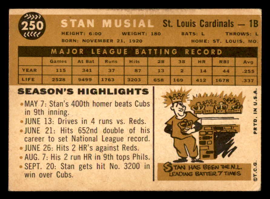 1960 Topps Baseball #250 Stan Musial Cardinals VG-EX 539000