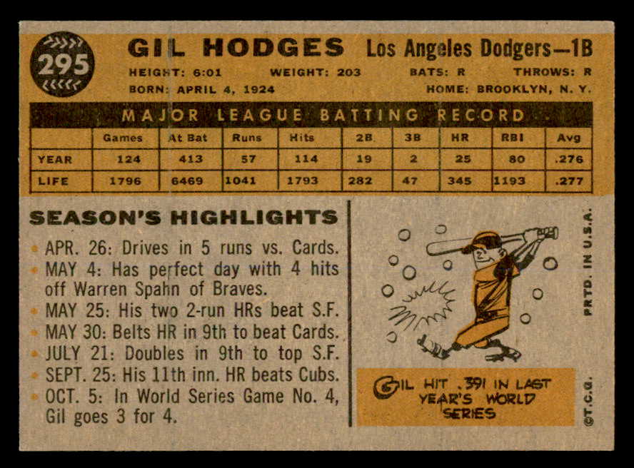 1960 Topps Baseball #295 Gil Hodges Dodgers EX-MT 539442