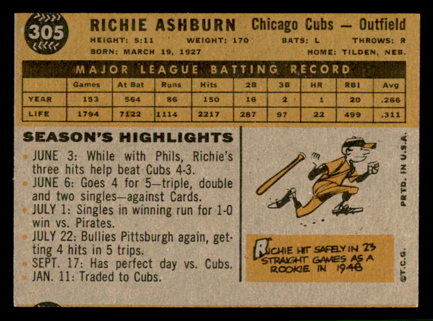1960 Topps Baseball #305 Richie Ashburn Cubs EX-MT 540227