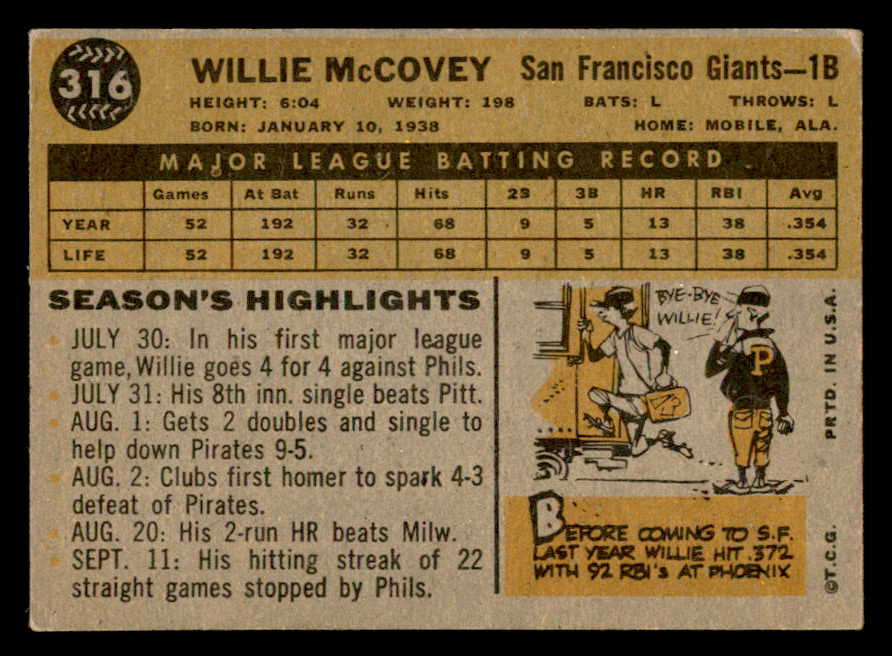 1960 Topps Baseball #316 Willie McCovey Giants VG-EX 538988