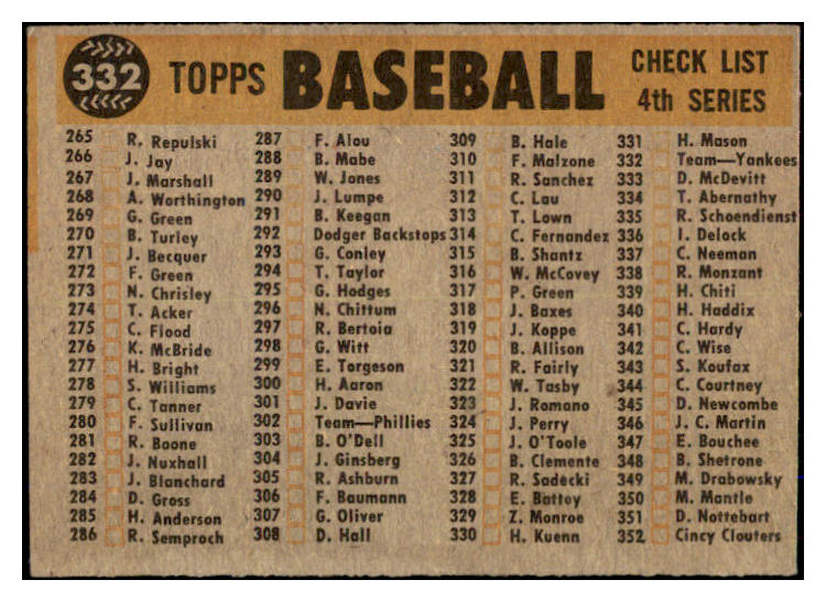 1960 Topps Baseball #332 New York Yankees Team EX 527538