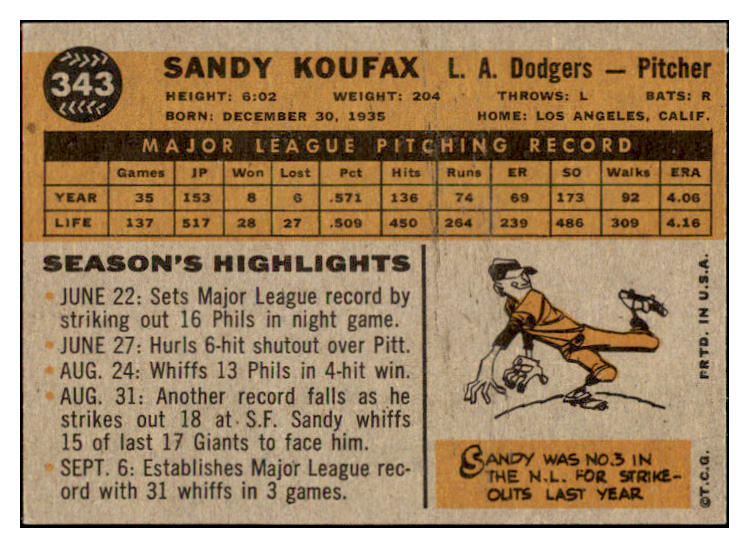1960 Topps Baseball #343 Sandy Koufax Dodgers EX-MT 529113