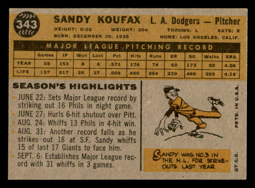 1960 Topps Baseball #343 Sandy Koufax Dodgers NR-MT 541762