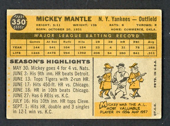 1960 Topps Baseball #350 Mickey Mantle Yankees VG-EX 538545