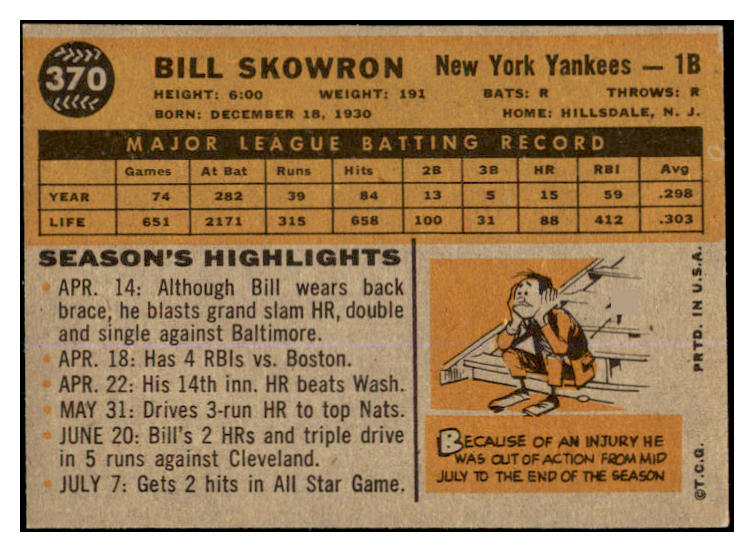 1960 Topps Baseball #370 Bill Skowron Yankees EX 527586
