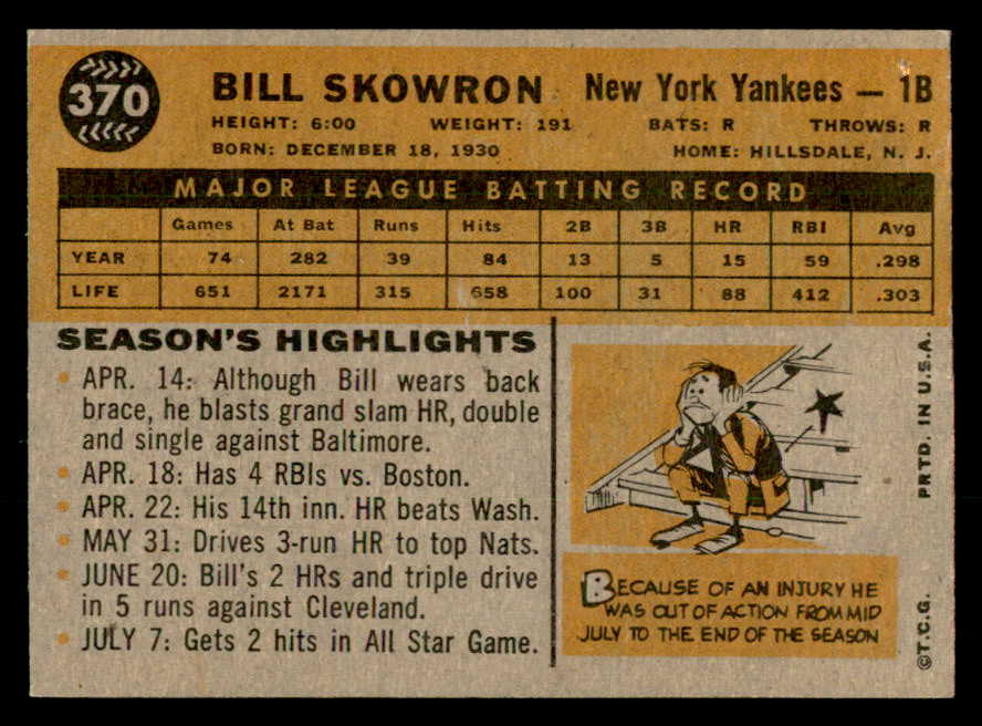 1960 Topps Baseball #370 Bill Skowron Yankees VG-EX 540261