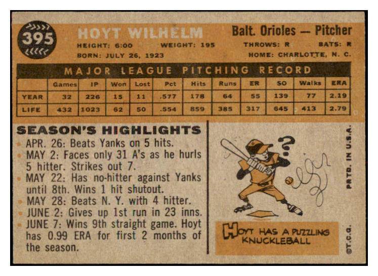1960 Topps Baseball #395 Hoyt Wilhelm Orioles EX-MT 531146