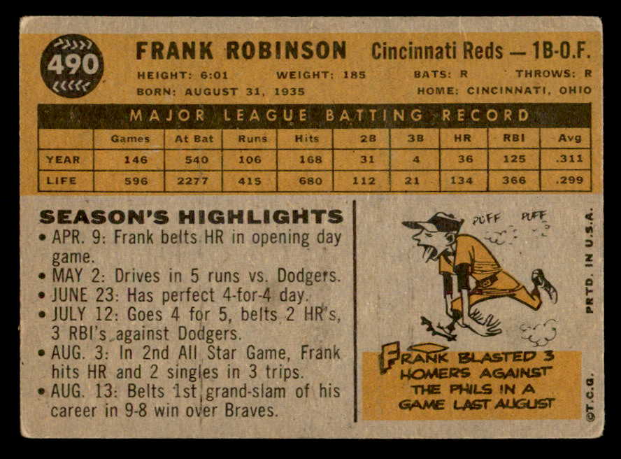 1960 Topps Baseball #490 Frank Robinson Reds VG-EX 539395