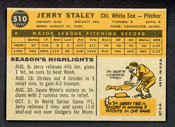 1960 Topps Baseball #510 Jerry Staley White Sox EX-MT 524436