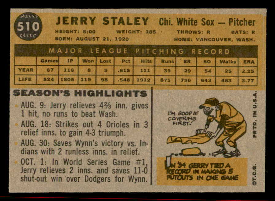 1960 Topps Baseball #510 Jerry Staley White Sox EX-MT 542694