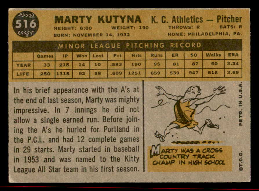 1960 Topps Baseball #516 Marty Kutyna A's EX-MT 542697