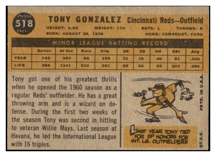 1960 Topps Baseball #518 Tony Gonzalez Reds EX-MT 531208
