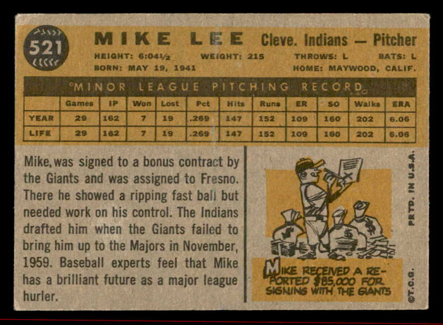 1960 Topps Baseball #521 Mike Lee Indians VG-EX 542737