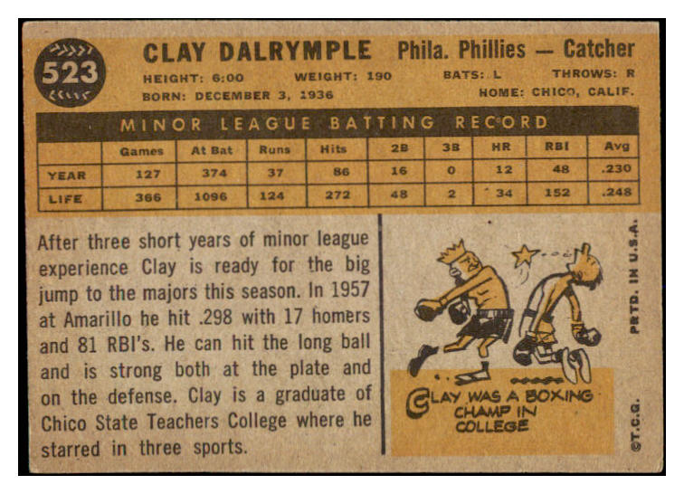 1960 Topps Baseball #523 Clay Dalrymple Phillies EX 527820