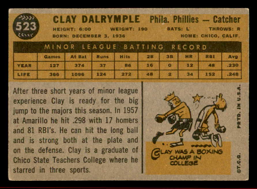 1960 Topps Baseball #523 Clay Dalrymple Phillies VG-EX/EX 542731