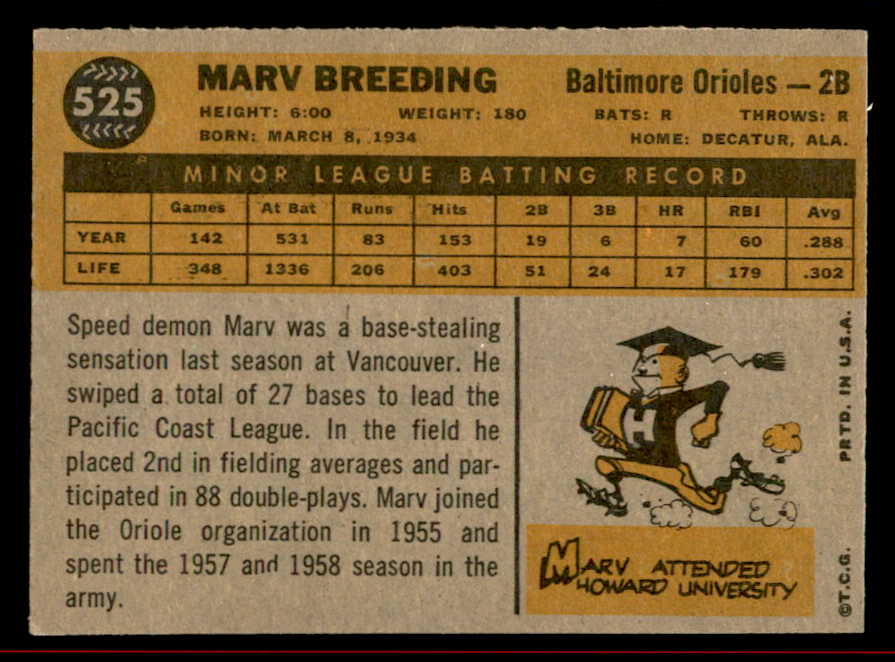 1960 Topps Baseball #525 Marv Breeding Orioles NR-MT 542670