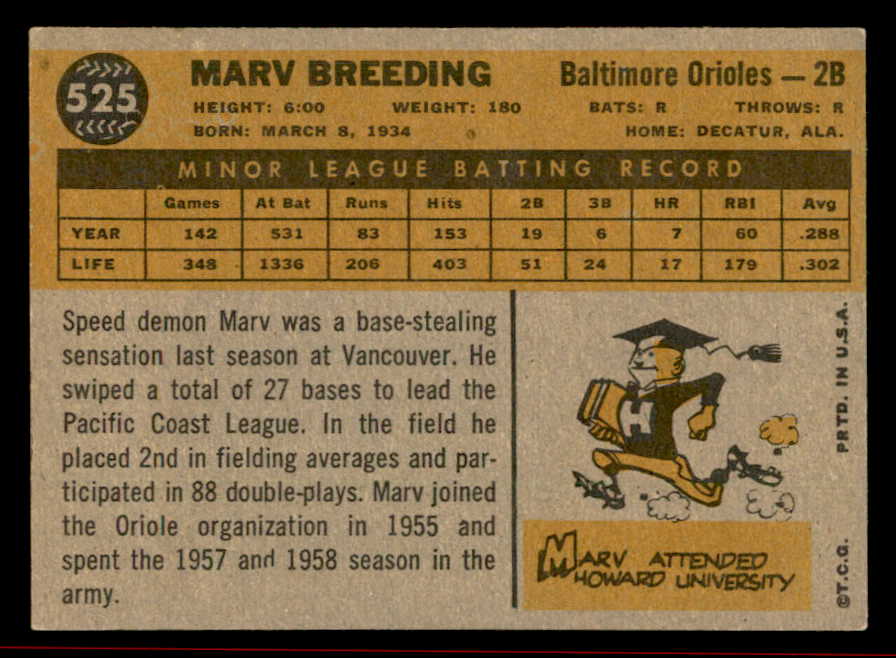 1960 Topps Baseball #525 Marv Breeding Orioles VG-EX 542739