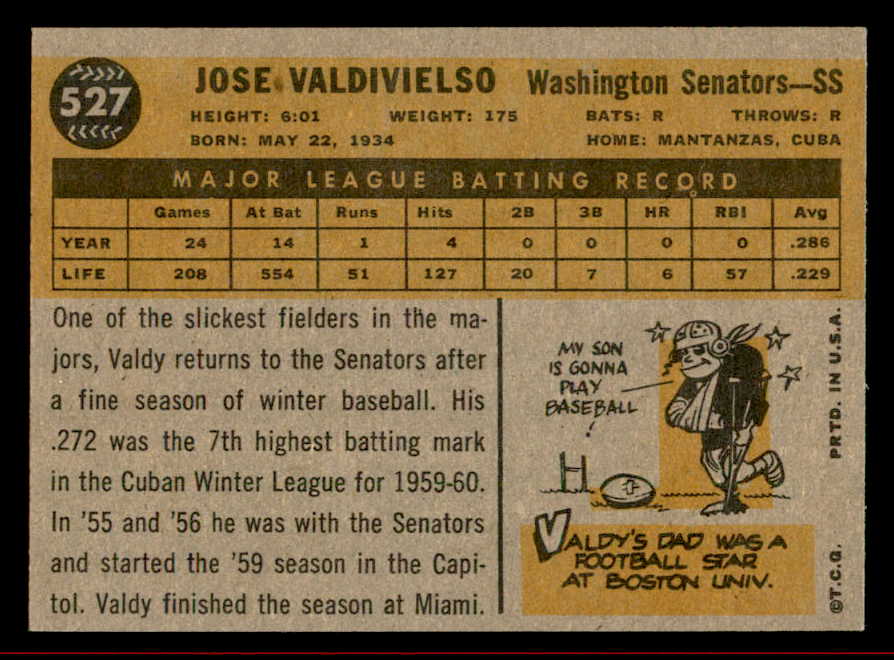 1960 Topps Baseball #527 Jose Valdivielso Senators NR-MT 542671