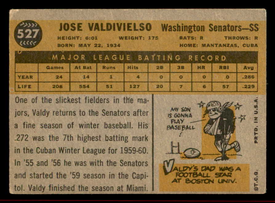 1960 Topps Baseball #527 Jose Valdivielso Senators VG-EX 542740